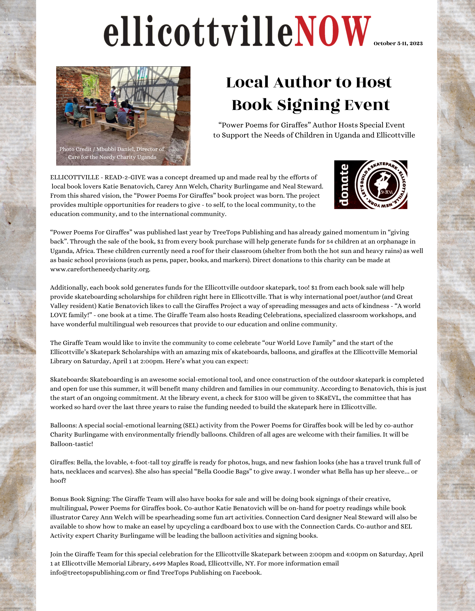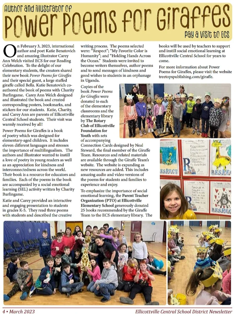 The 2023 Ellicottville Central School Reading Celebration was a blast! So glad the Power Poems For Giraffes Team had the opportunity to present a "Love of Reading" to grades pre k through 5th.